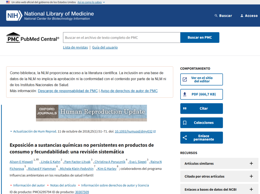 Revisión científica sobre ftalatos y función tiroidea (PMC6295794):
