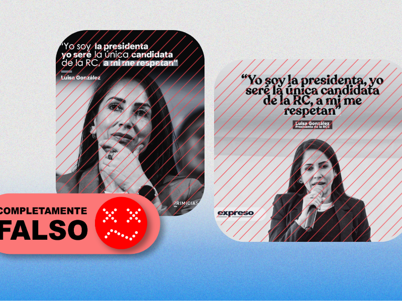 COMPLETAMENTE FALSO: Las portadas que atribuyen a Luisa González la frase «Yo soy la presidenta, yo seré la única candidata de la RC, a mí me respetan» son falsas. Primicias y Expreso confirmaron que nunca publicaron este contenido y las imágenes presentan alteraciones digitales. No existe evidencia de que González haya pronunciado esta declaración.