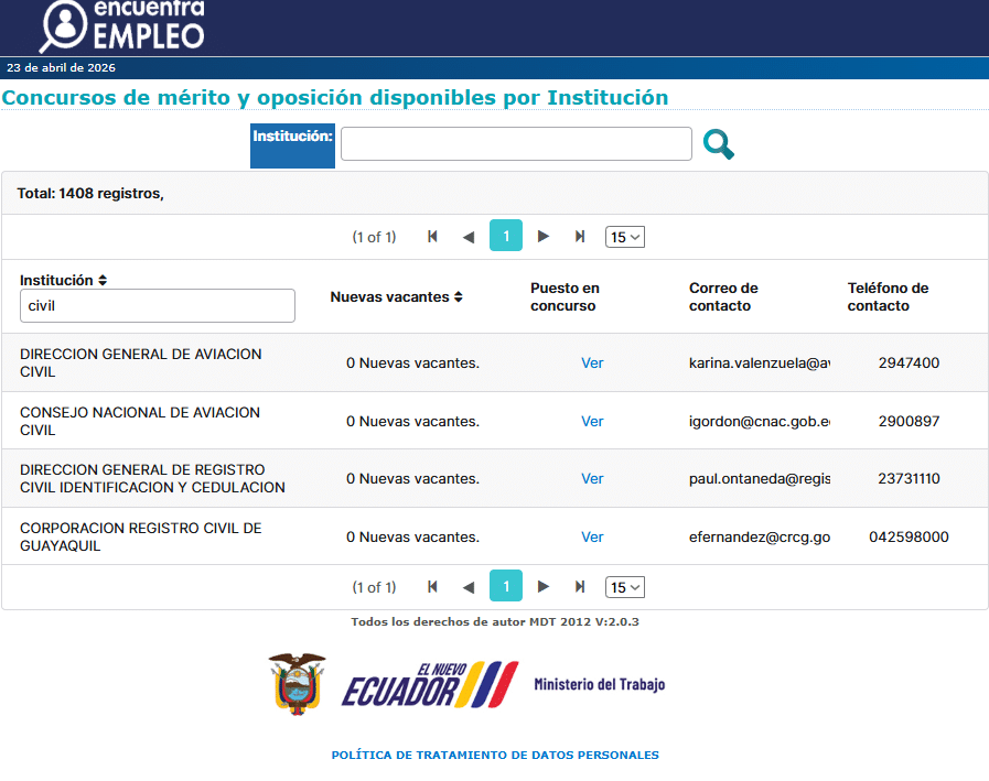 - En los canales oficiales del Registro Civil no se encontraron procesos de contratación vigentes. Tampoco hay registros en Socio Empleo, la plataforma estatal donde deben publicarse los concursos de méritos para el ingreso al servicio público en Ecuador.