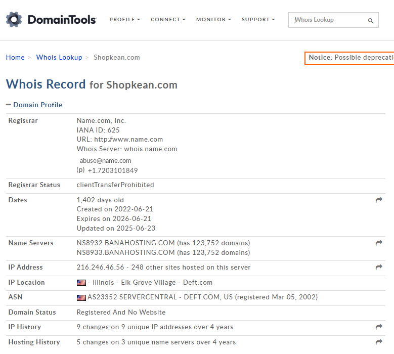 - Los enlaces del video no corresponden al Registro Civil: terminan en shopkean.com, un dominio registrado en Illinois, Estados Unidos, según la herramienta Domain Tools.