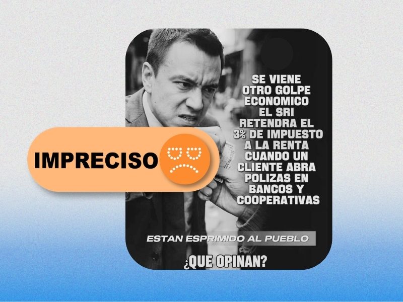 - Una portada viral en TikTok afirma que el SRI “retendrá el 3% de impuesto a la renta cuando un cliente abra pólizas en bancos y cooperativas”.