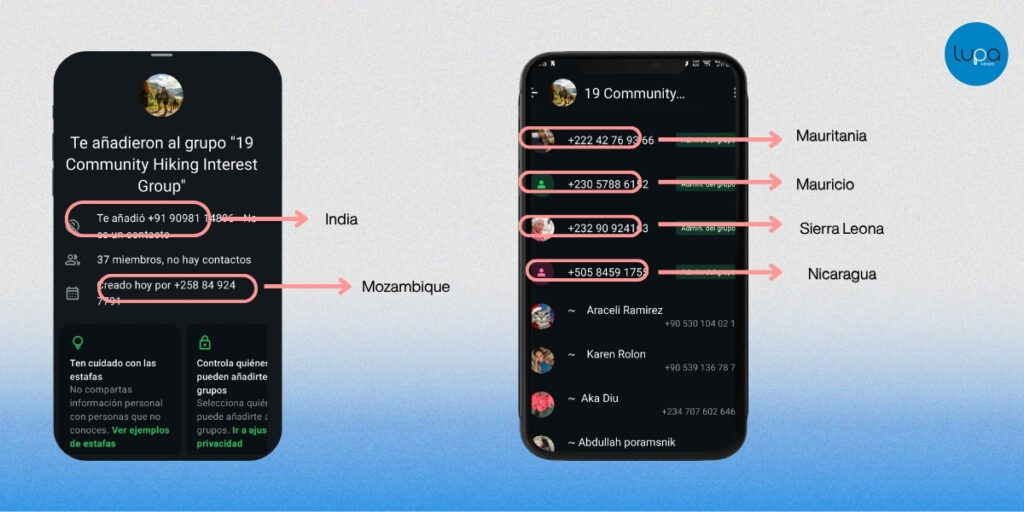 - El grupo fue creado y administrado por números con prefijos de Mozambique (+258), Mauritania (+222), Mauricio (+230), Sierra Leona (+232), Nicaragua (+505) e India (+91), sin ninguna vinculación verificable con Warner Bros. Discovery.