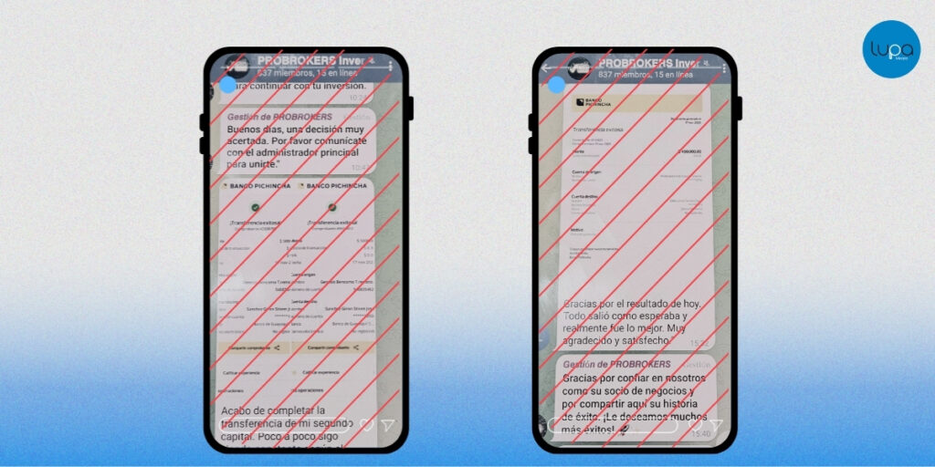 El grupo de Telegram no pertenece a Probrokers S.A. y usa su nombre para cometer una estafa. La empresa confirmó a Lupa Media que no opera en Telegram, no ofrece inversiones por mensajería y nunca recibe dinero en cuentas personales.Los comprobantes que muestran supuestas ganancias son falsificaciones.