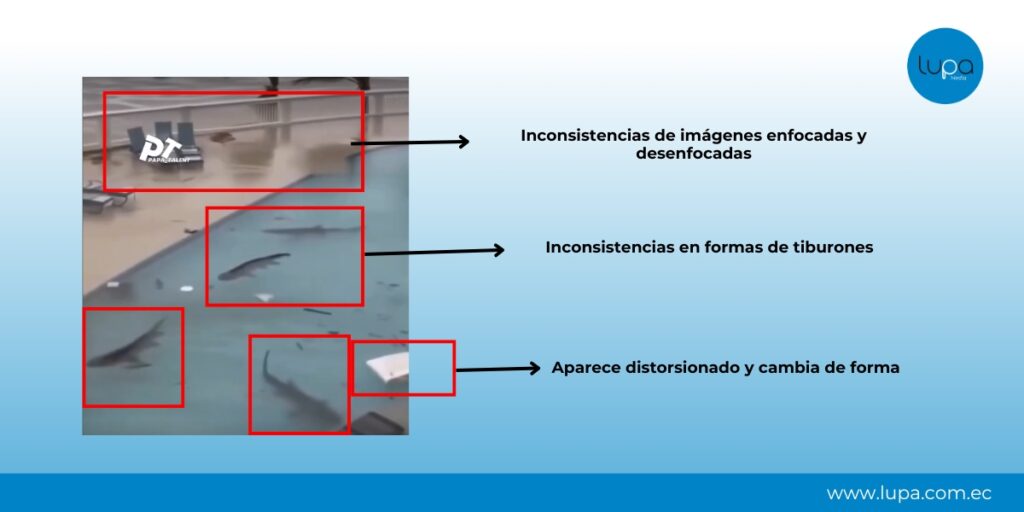 Video de tiburones en piscina durante huracán Melissa fue generado con inteligencia artificial