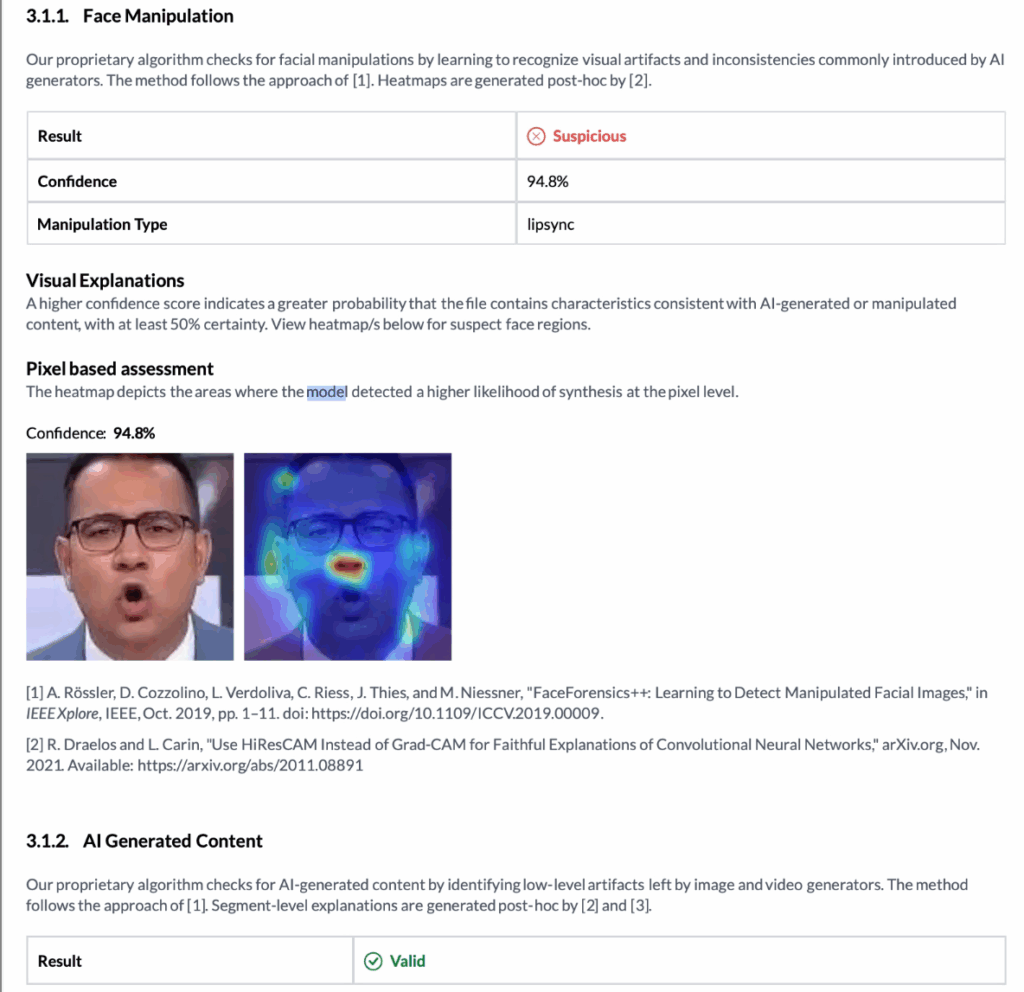 • Sensity AI, detector especializado en deepfakes, identificó un 94,8% de manipulación facial y un 93,3% de alteración de voz, confirmando el uso de inteligencia artificial en el video.