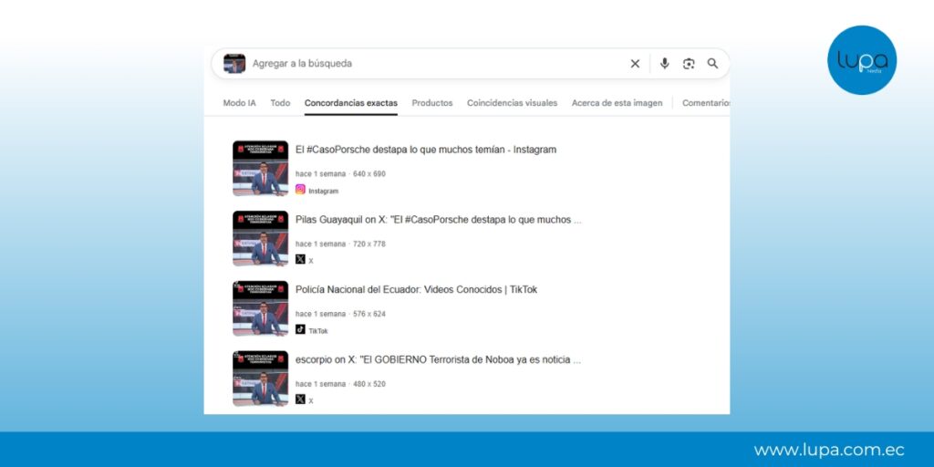 • Lupa Media realizó una búsqueda inversa de imágenes con Google Lens e identificó que al menos 38 versiones de este video han circulado en Facebook, Instagram, TikTok y X desde el 18 de octubre de 2025.