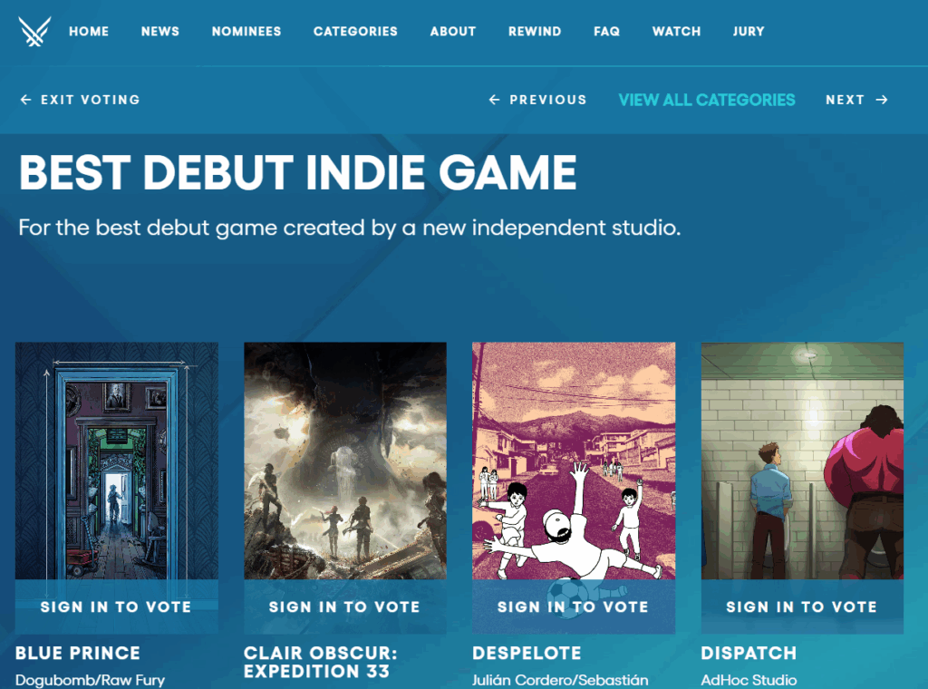 - El juego aparece en la categoría «Best Debut Indie Game» junto a otros títulos independientes que debutaron en 2025.