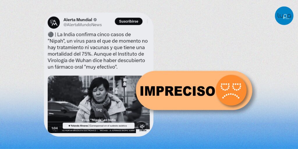 “La India confirma cinco casos de «Nipah», un virus para el que de momento no hay tratamiento ni vacunas y que tiene una mortalidad del 75%. Aunque el Instituto de Virología de Wuhan dice haber descubierto un fármaco oral muy efectivo”