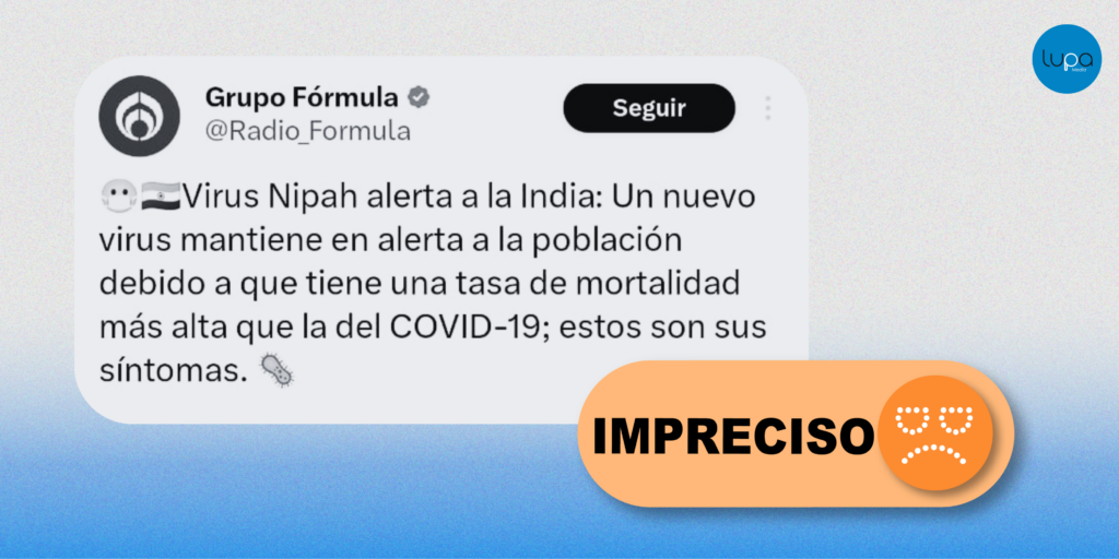 La comparación directa con la covid-19 es imprecisa: con la disponibilidad de vacunas, la letalidad global estimada de la covid-19 se sitúa alrededor del 1% de los casos confirmados, mientras que en los brotes documentados de Nipah la letalidad ha oscilado entre el 40% y el 75%. Sin embargo, el Nipah presenta una capacidad de transmisión mucho menor y sus brotes han sido localizados.